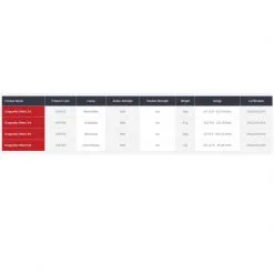 | TAGLIA | COLORE | RESISTENZA | RANGE | PESO |