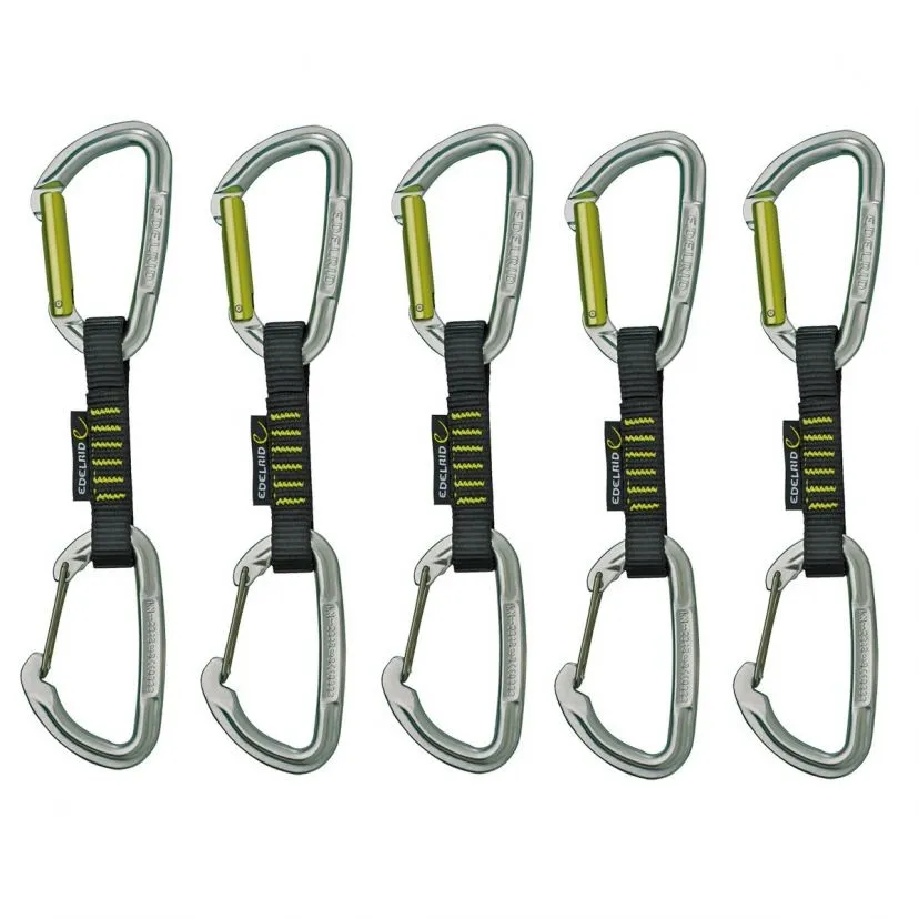 Edelrid Slash Wire Set è un rinvio da arrampicata composto da un moschettone con la leva piena e uno, quello dal lato della corda, con la leva a filo.