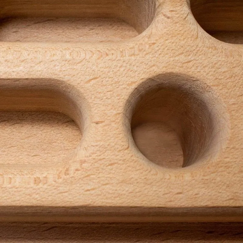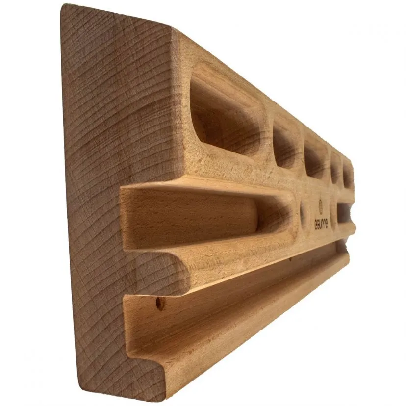 Realizzato in legno di faggio ha il giusto grip, senza consumare eccessivamente la pelle. Il range di prese a disposizione è ampio sia per tipologia che per misura: