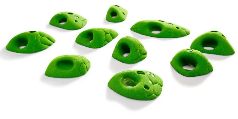 Il set Smog contiene dieci prese bidita e tridita piccole da arrampicata, realizzate in poliestere.