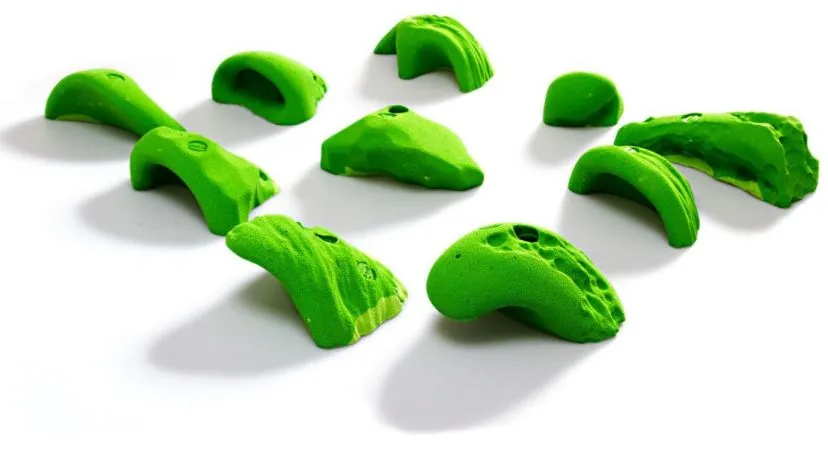 Il set Smog contiene dieci prese maniglie grandi da arrampicata, realizzate in poliestere.