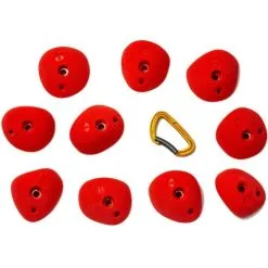 Dieci prese per l’arrampicata Smog che puoi usare come buone maniglie in verticale o per tirare forte in strapiombi più o meno pronunciati. Sono fatte in poliestere.