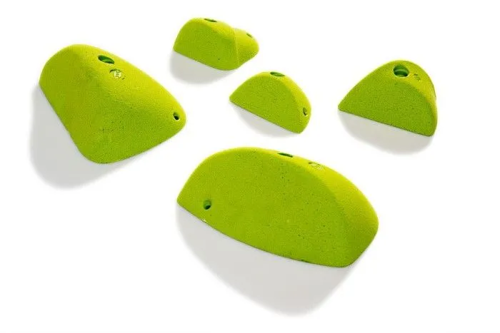 Il set Smog contiene cinque prese miste da arrampicata, realizzate in poliestere.