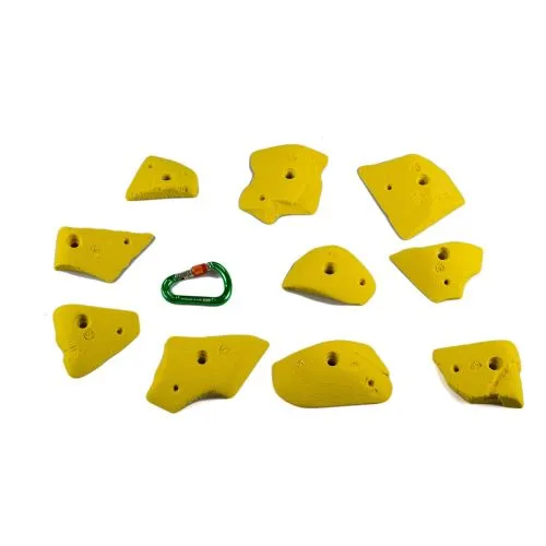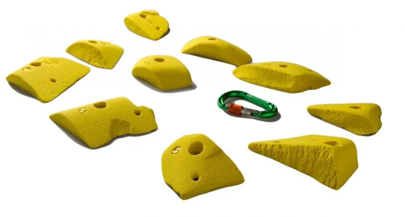 Il set Smog contiene dieci prese tacche piatte da arrampicata, realizzate in poliestere.